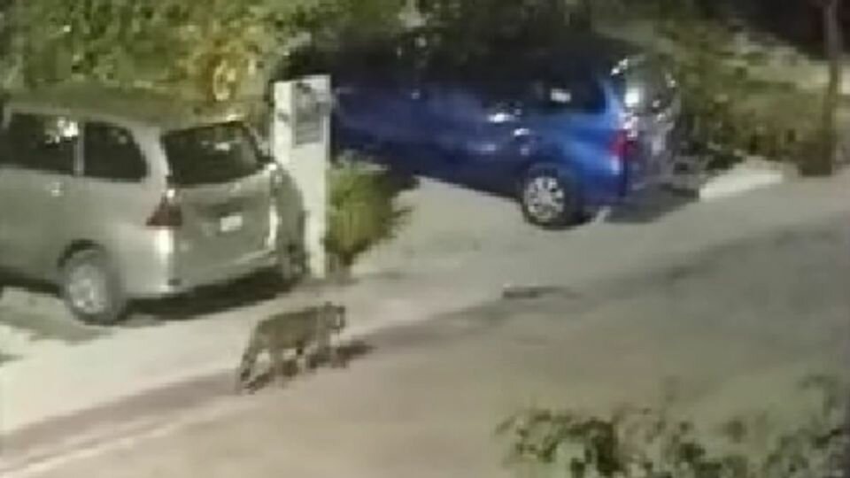 Un vecino del destino de playa captó el momento en el que un jaguar paseaba por Puerto Morelos, específicamente en el estacionamiento de un fraccionamiento Arbolada.