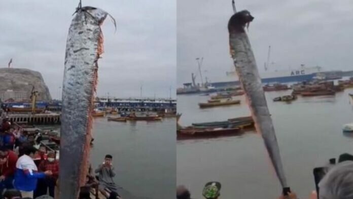 Un grupo de pescadores logró capturar un pez de casi seis metros de longitud en Chile, el cual aseguran que predice tsunamis y sismos.