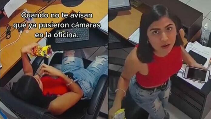 Una joven empleada se volvió viral en redes sociales por su manera de trabajar ya que sus jefes pusieron cámaras de vigilancia.