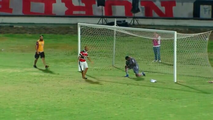 “¿Pueden los aficionados invadir el campo para enseñar al portero a atrapar? Ocurrió en la Serie D, en el partido de Santa Cruz…” se lee en un video compartido en redes.