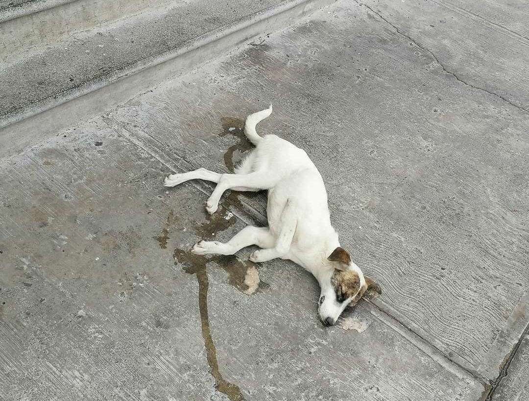 Testigos de los hechos mencionaron que el perrito de color blanco, solamente se sentó frente a la carnicería y empezó a saborearse la comida, situación que enardeció al carnicero que acabó agrediéndolo.
