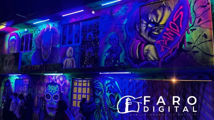 Finalmente, se detalló que una vez pintados los murales, se colocan luces neón que mezclado con los murales, hacen que estos se vean fosforescentes durante la noche, cuando vecinos y extraños aprovechan para tomarse una fotografía del recuerdo.
