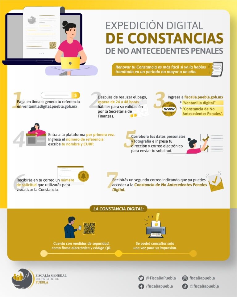 La Fiscalía General del Estado (FGE) de Puebla implementó un método digital para emitir las Constancias de Antecedentes No Penales, siempre y cuando se haya realizado el tramite de manera presencial en un plazo no mayor al año.