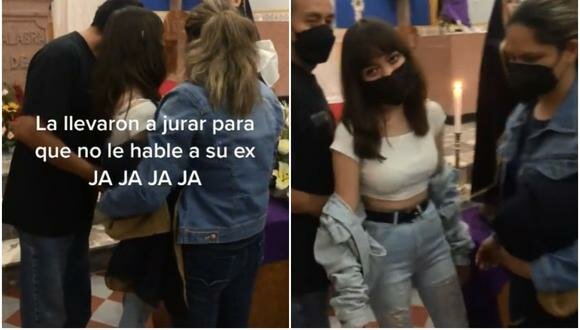 A través de TikTok, el usuario @mr.valeskaa compartió un video en el que se ve a una joven acompañada de sus padres jurando en una iglesia: “La llevaron a jurar para que no le hable a su ex JA JA JA JA” escribió en el video.
