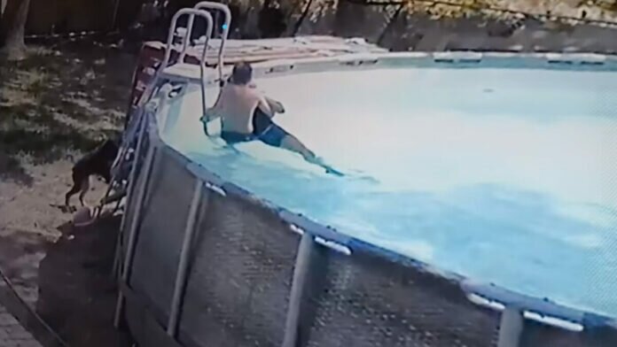 Al escuchar los ruidos en la piscina, el padre de Lori corrió hasta el lugar para ver qué ocurría y se encontró con la escena del chico llevando a su mamá a la orilla de la alberca.