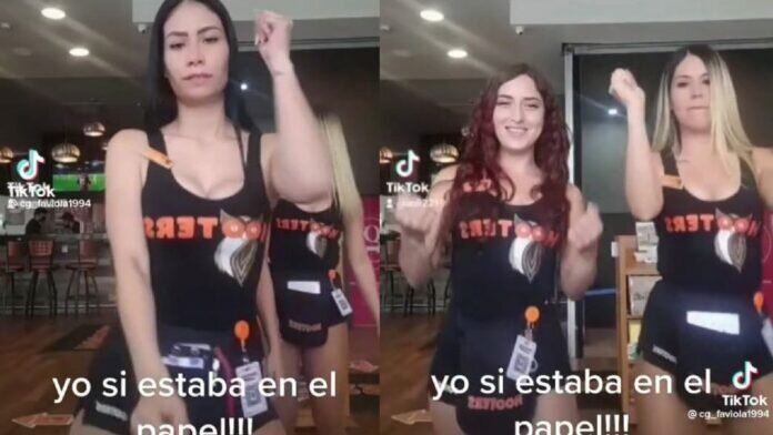 A través de TikTok, la usuaria identificada como “Faviola” compartió el video que ya acumula miles de vistas, en el que junto a otras dos meseras comenzaron a bailar la canción “Castigo” mientras presumían sus uniformes de Hooters, mismos que se caracterizan por ser de minishorts y camisa de tirantes en color negro y entallados al cuerpo.