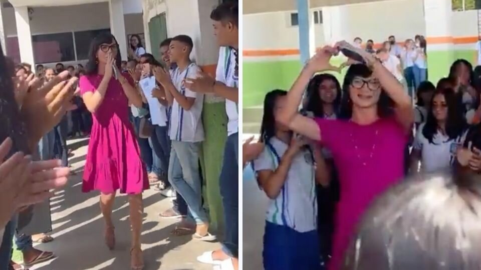 En el clip se puede ver como los alumnos forman un “pasillo de honor” por el que pasó la maestra, todo mientras la recibieron entre aplausos y carteles con tiernos mensajes con los que le hicieron saber el gran cariño que le tienen.