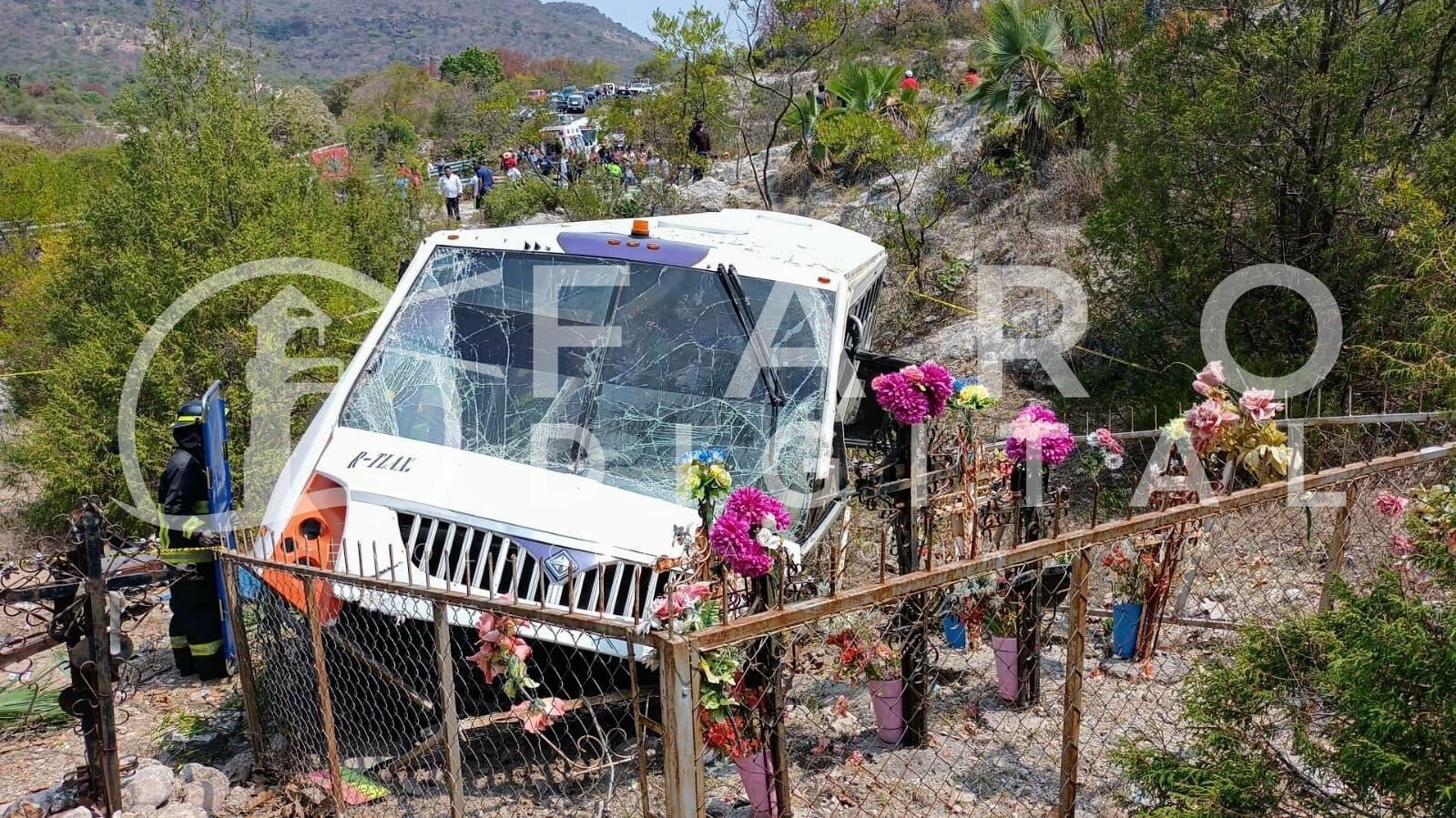 Sin embargo, cerca de las 11 de la mañana, el autobús de la Ruta Tlax, Unidad 09, perdió el control y en las curvas se salió del camino quedando en una barranca de aproximadamente 10 metros.
