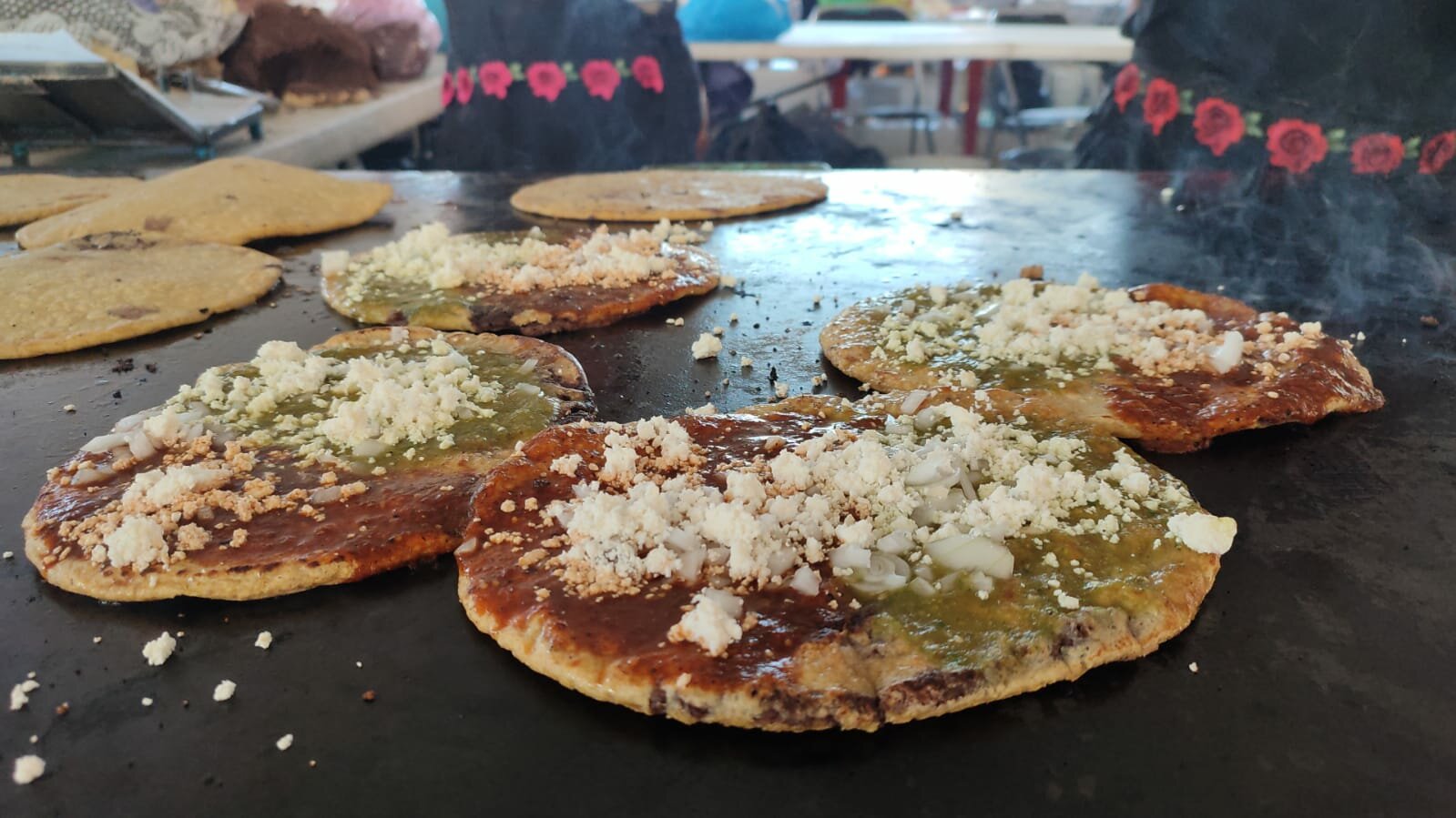 Nataly Flores Ramos detalló que tan solo en su área de trabajo, hará en esta feria un total de más de 4 mil gorditas y; para ello, son 80 litros y kilos de diversos ingredientes como salsa verde, roja, cebolla, además de queso.