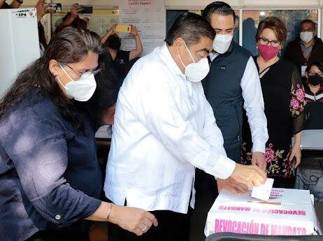 El gobernador de Puebla, Miguel Barbosa Huerta, participó en la Consulta de Revocación de Mandato y consideró que es un ejercicio ciudadano que está en construcción, pero que permitirá fortalecer la democracia en el país.