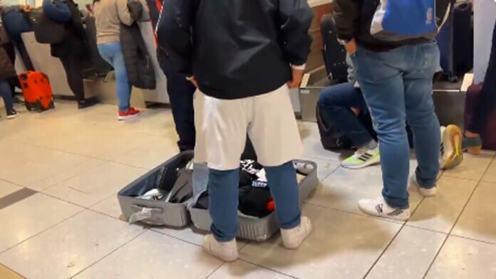 El turista decidió abrir su maletín y ponerse una prenda tras otra para alivianar la carga.
