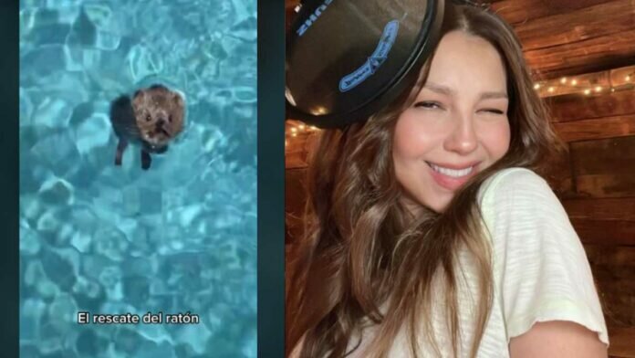 A través de sus redes sociales, la cantante Thalía compartió el rescate de un pequeño ratón de campo que estaba dentro de una piscina y que no podía alcanzar la orilla.