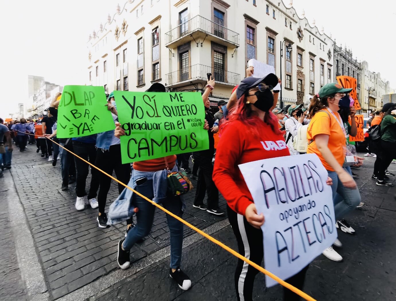 Alumnos de la Universidad de las Américas Puebla (UDLAP), se manifestaron desde la Recta a Cholula hasta el zócalo de Puebla, como parte de la presunta liberación del campus.