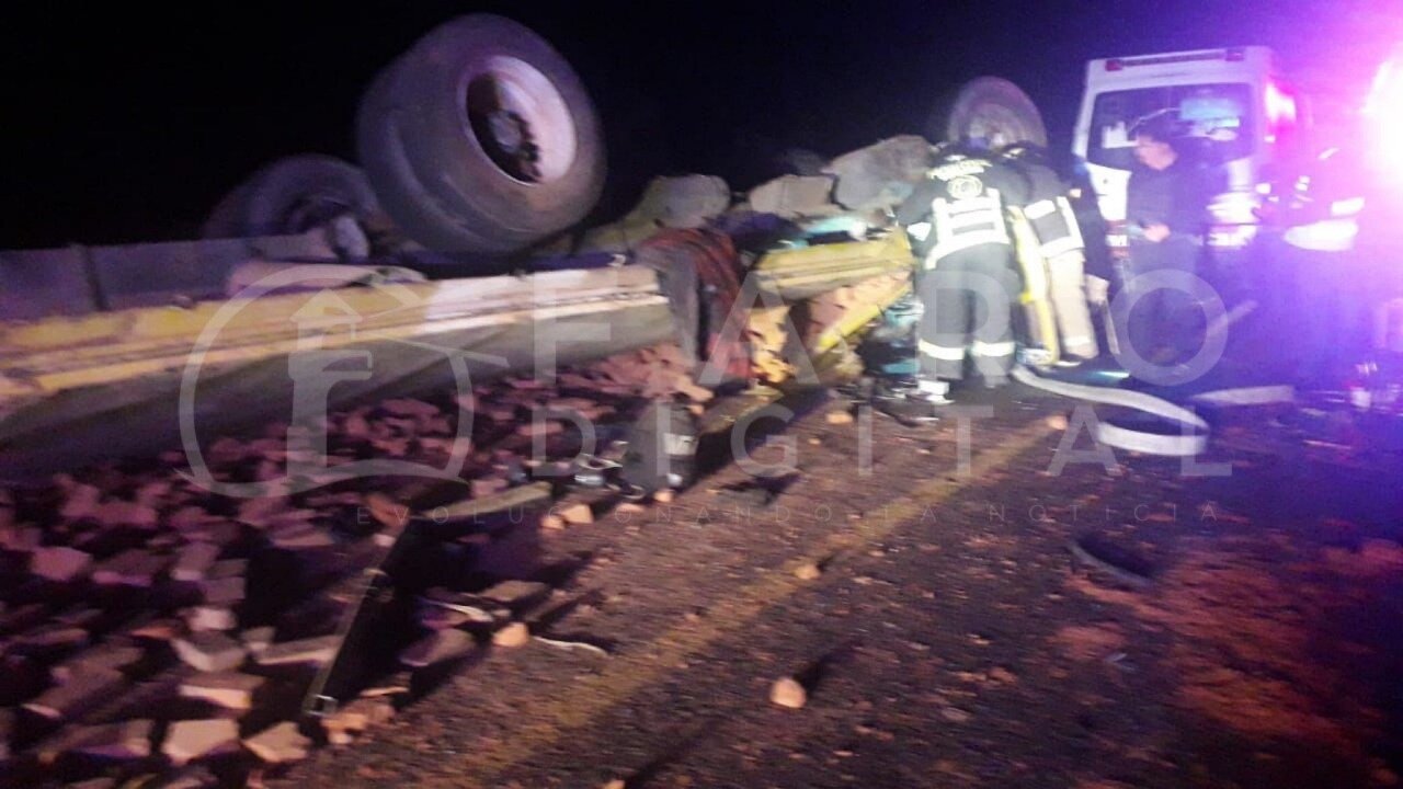 Un camión que transportaba ladrillo perdió el control de la unidad, motivo por el cual volcó en la autopista Amozoc-Perote esto a la altura del kilómetro 48.