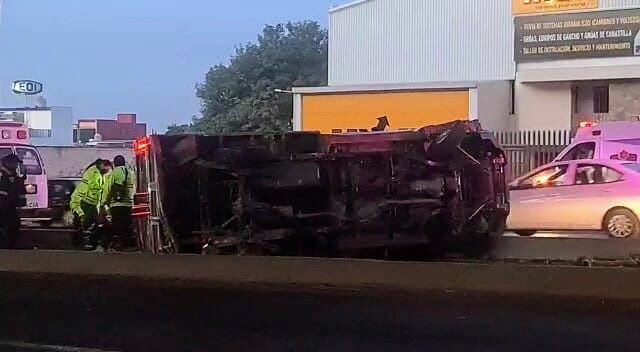 El piloto de la unidad de carga, aparentemente perdió el control, por ello colisionó contra la guarnición y finalmente volcó sobre su costado izquierdo.